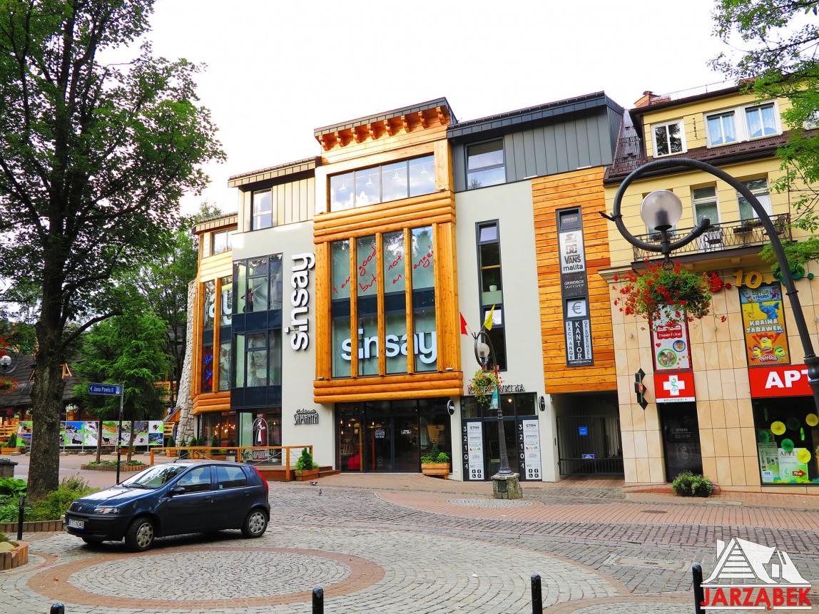 Budynek handlowo-usługowy to kompleksowa realizacja o unikalnej, nowoczesnej architekturze znajdująca się w ścisłym centrum Zakopanego przy ul Krupówki 4A. Prace obejmowały realizację obiektu wraz z pełnym wykończeniem elewacji oraz wnętrz, montażem wszelkich instalacji, budowę stacji TRAFO, oddanie budynku do użytkowania. Funkcjonalny obiekt, skupia w sobie cztery naziemne, usługowe kondygnacje oraz obszerną część piwnic, poniżej poziomu gruntu. Konstrukcja obiektu to charakterystyczne połączenie technologi żelbetu z elementami konstrukcji stalowej oraz więźbą dachową wykonaną z drewna i stali. Pokrycie dachu o różnorodnych spadkach stanowi blacha płaska z rąbkiem stojącym. Wykończenie elewacji to kompromis nowoczesnych materiałów budowlanych oraz stolarki aluminiowej z tradycyjnymi elementami z drewna modrzewiowego.